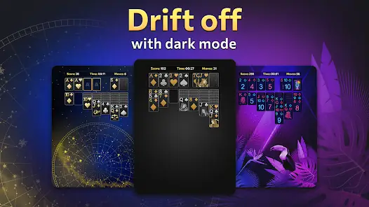 ♥️ 定番のスコアシステム。進行中の対戦成績と歴代ベストスコアの統計で、ソリティアジグソーパズルゲームの成績を管理可能