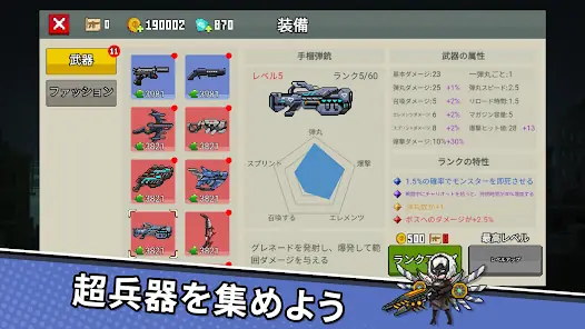 お気に入りのキャラクターとさまざまな武器を選択し、戦闘でランダムなスキルを選択して、さまざまな成長戦略とさまざまなジャンルを反映させますが、同じ、非常に優れた操作感、ホットなシーン、クールです! そして、生化学の地で生き残れ!